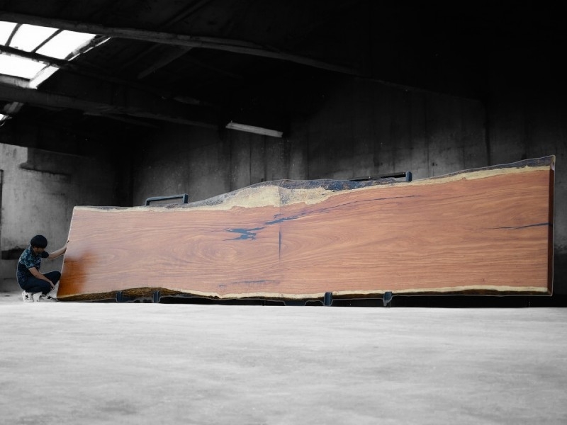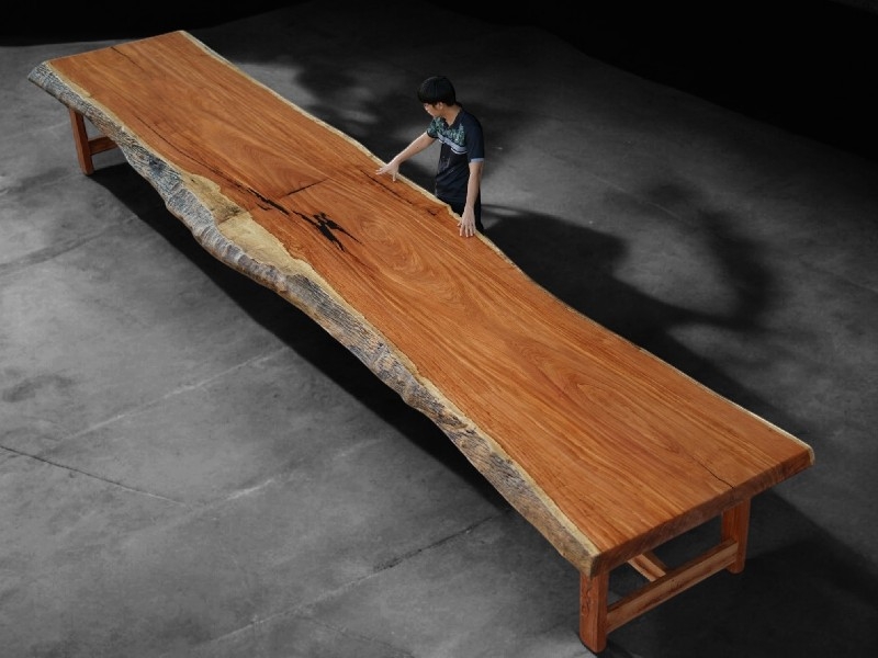 โต๊ะไม้แผ่นใหญ่ ท็อปโต๊ะไม้แผ่นเดียว 20 ที่นั่ง