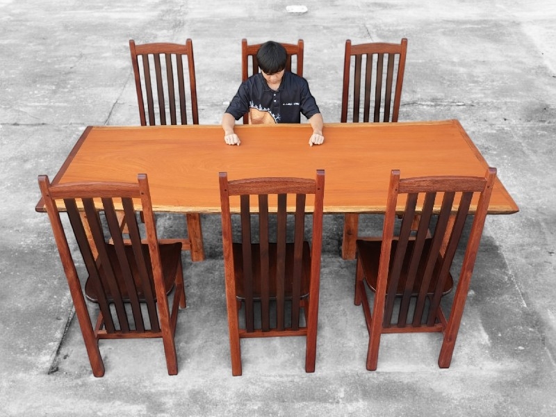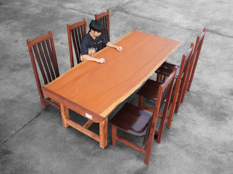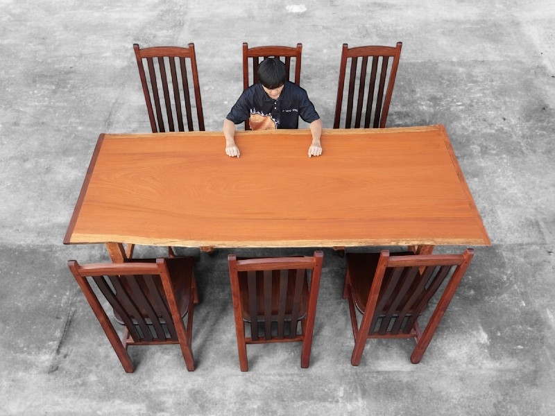 โต๊ะไม้แผ่นใหญ่ ท็อปโต๊ะไม้แผ่นเดียว 6 ที่นั่ง