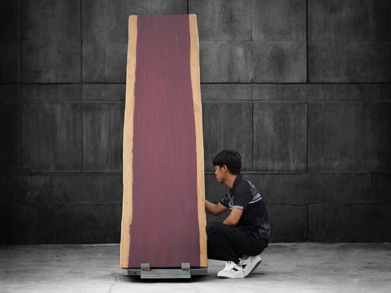 โดดเด่นด้วยสีแดงอมส้มที่เปลี่ยนเป็นสีน้ำตาลเข้มเมื่อเวลาผ่านไป มีลวดลายไม้ธรรมชาติที่สวยงามและเป็นเอกลักษณ์ เหมาะสำหรับการใช้งานในบ้านที่ต้องการความหรูหราและคงทน สินค้าปัจจุบันยังอยู่ในสภาพ