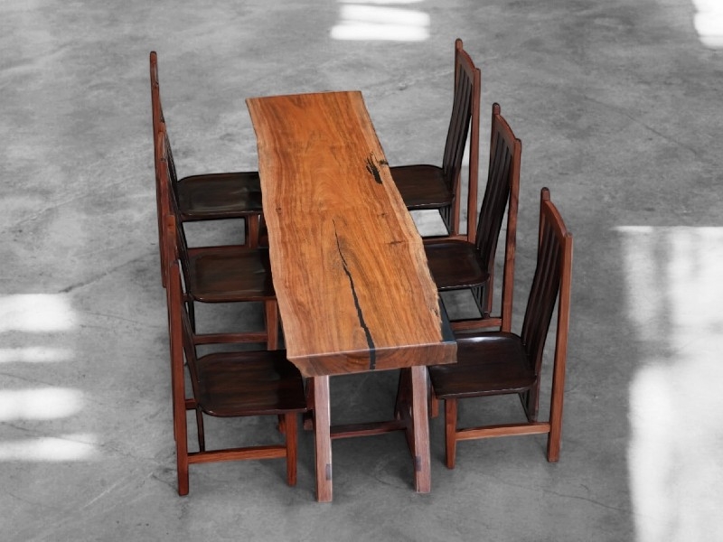 โต๊ะไม้แผ่นใหญ่ ท็อปโต๊ะไม้แผ่นเดียว 6 ที่นั่ง